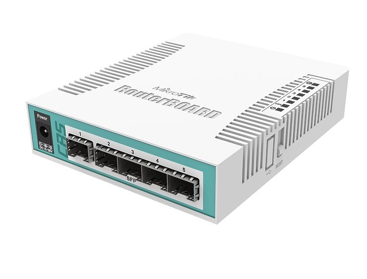 O MikroTik CRS106-1C-5S é um switch inteligente de tamanho compacto (desktop), ideal para ambientes técnicos, pequenos data-centers ou backbone de fibras leves. Ele possui 1 porta “combo” RJ-45/ SFP de Gigabit e 5 gaiolas SFP de 1,25 Gbps, CPU de 400 MHz, RAM de 128 MB, armazenamento flash de 16 MB, executando o sistema operacional RouterOS com licença nível 5.