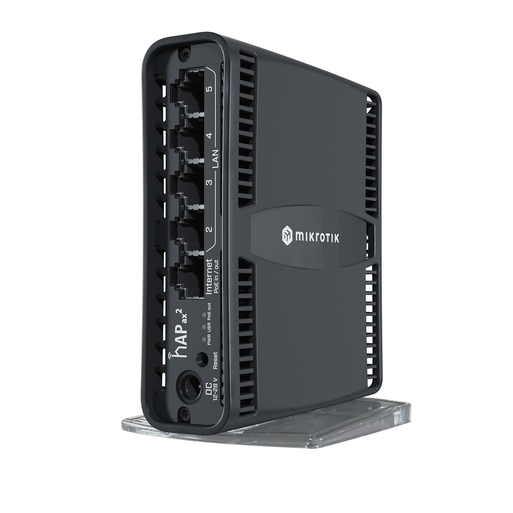 O hAP ax² é a evolução do clássico hAP ac², agora com Wi-Fi 6 (802.11ax), rádio dual-band 2×2 (4/4,5 dBi), CPU quad-core 864 MHz, 1 GB de RAM e 5 portas Gigabit. Traz PoE-in e PoE-out (passivo) para instalações limpas e flexíveis, além do RouterOS v7 (licença L4) com recursos profissionais de firewall, VPN, VLAN, QoS e muito mais.