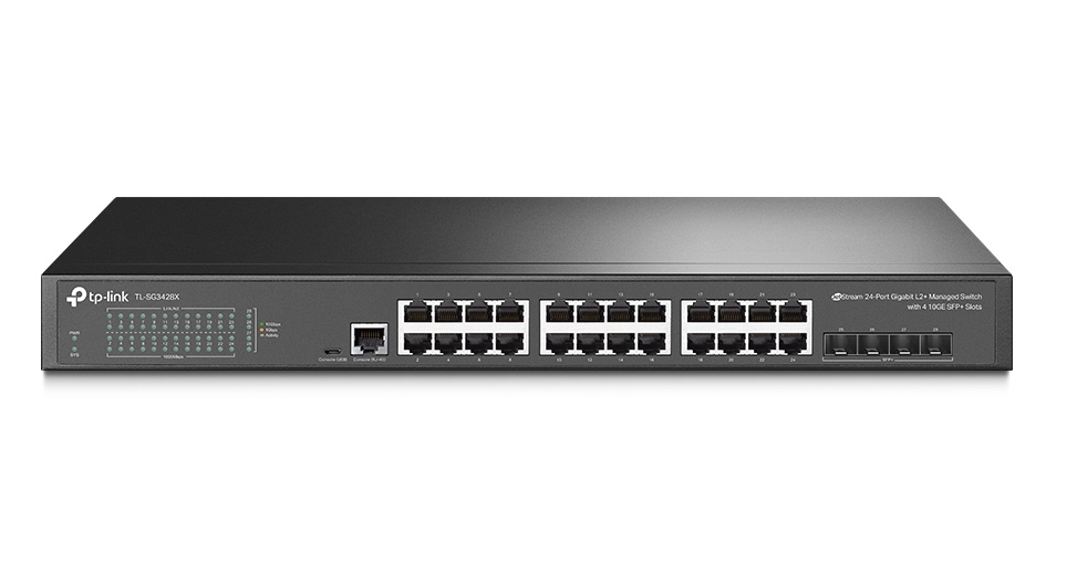 O TP-Link TL-SG3428X é um switch gerenciável de alto desempenho desenvolvido para redes corporativas, provedores e ambientes de alta densidade. Ele possui 24 portas Gigabit RJ45 para conexões locais e 4 slots SFP+ de 10Gbps que garantem uplinks de alta velocidade, ideais para interligar servidores, roteadores ou outros switches de backbone.