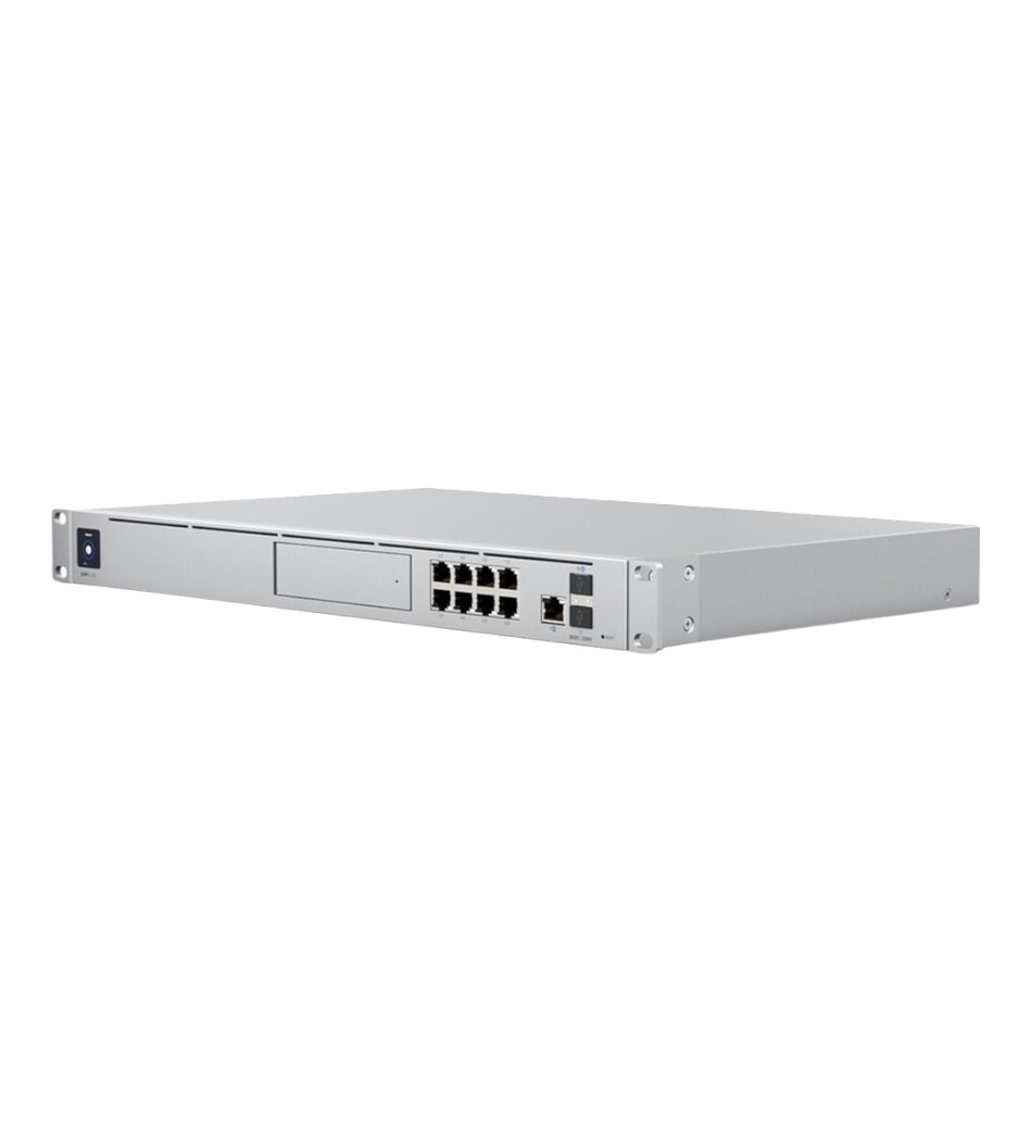 Ideal para redes empresariais e provedores, o UDM-Pro-SE oferece desempenho excepcional com throughput de até 3,5 Gbps em IDS/IPS, armazenamento interno SSD de 128GB e suporte para HDD adicional de 3.5” SATA. Ele ainda possui 8 portas Gigabit com PoE para alimentar dispositivos UniFi, câmeras, access points e IoT, tudo gerenciado centralmente pelo UniFi Network Controller.